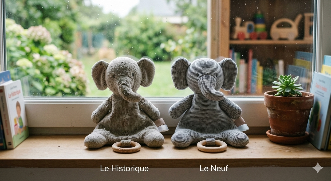 On ne va pas se mentir : entre parents, on a tous déjà eu ce moment de solitude. Ce moment où l'on tient du bout des doigts un morceau de tissu grisâtre, dont la forme originelle (un lapin ? un ours ? une serpillère ?) s'est perdue quelque part entre 2023 et la dernière poussée dentaire. Et pourtant, pour votre enfant, ce bout de tissu est plus précieux que le plus rutilant des jouets en bois de sa chambre.